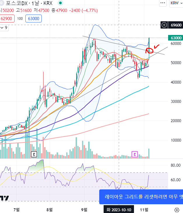 => 반대로 오늘 상승시 포스코 DX 롱 진입(신고가 돌파)