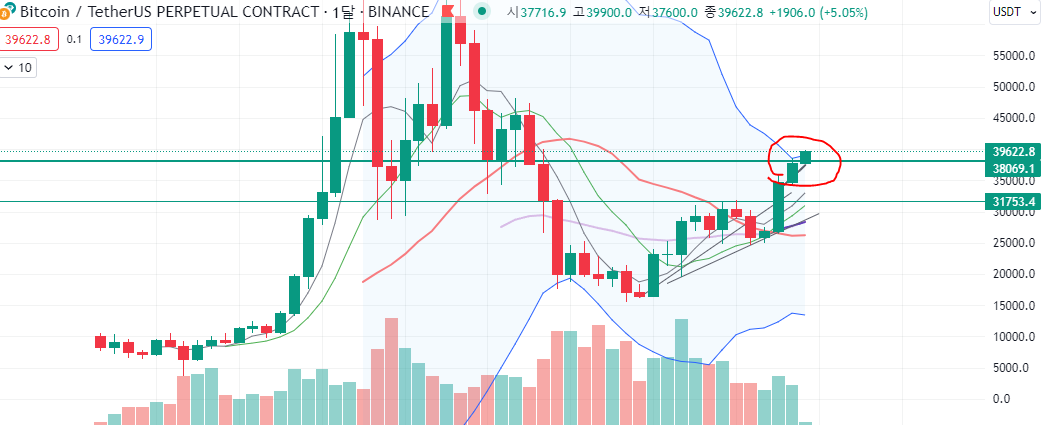 - 든든한 지지선이 되어버린 38k (월봉 볼벤 상단, 삼각수렴 상단자리)