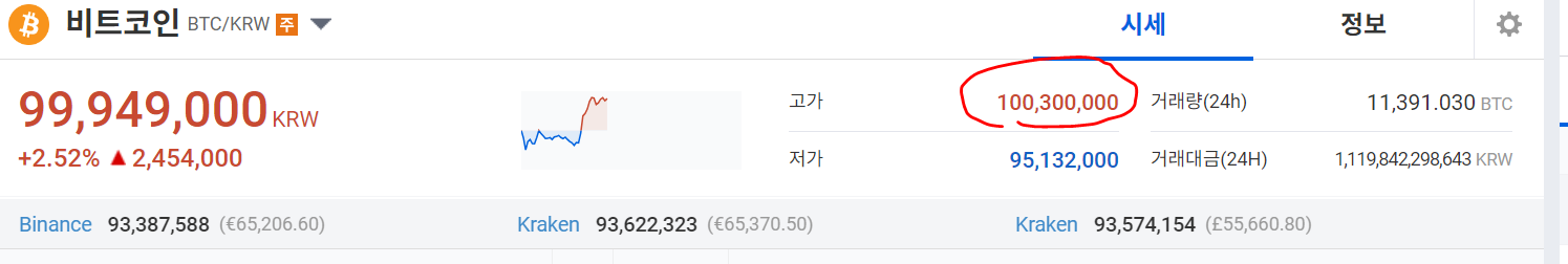 비트코인이 오늘 드디어 원화 1억원을 돌파하였음. (달러로도 ATH!)
