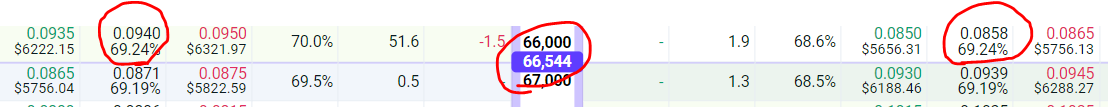 66544 - 0.0940%(6255) + 0.0858%(5709) - 66000 = - 2 (=> 콜옵션이 조금 고평가 상태 -> 합성선물 매도, 선물 매수)