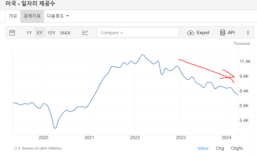 - 오늘은 JOLT 고용보고서 발표하고, 금요일에는 실업률 발표가 있음.